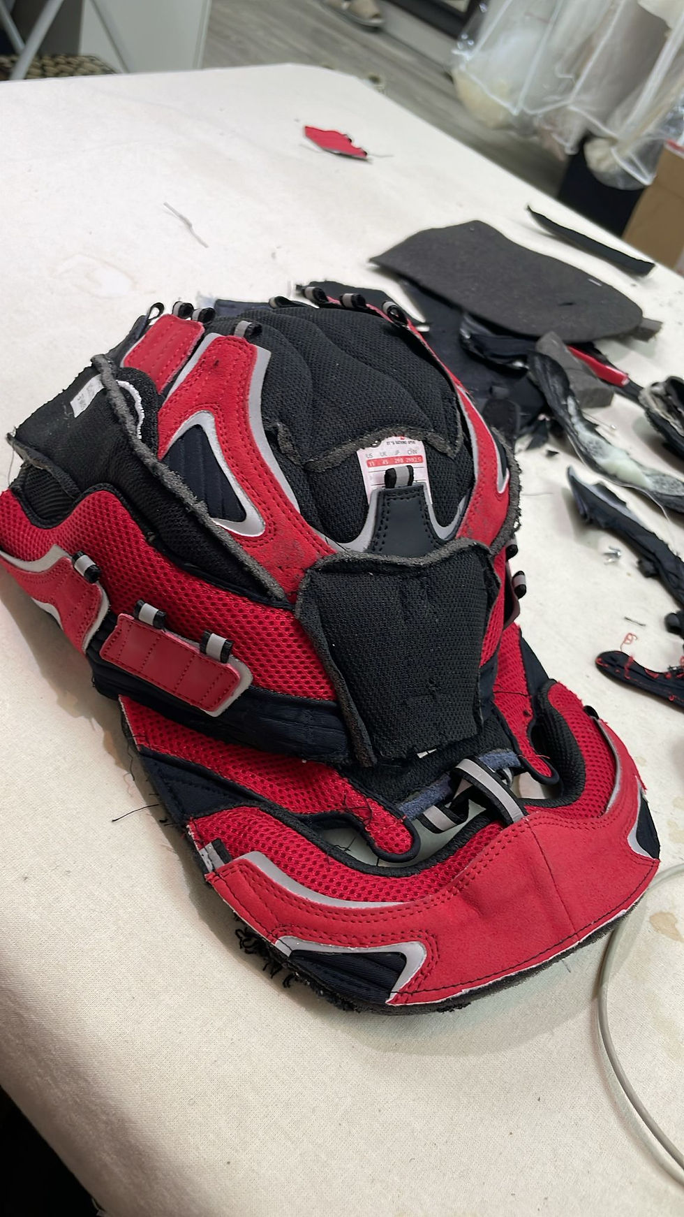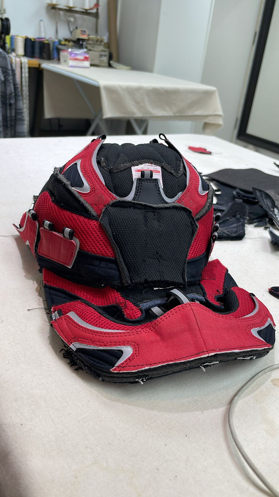 In the bold spirit of A BATHING APE®, this project reimagines sport shoes as striking caps for the FALL/WINTER 2024 COLLECTION. Deep black and vibrant crimson hues blend with textured leather accents, showcasing a daring evolution. Expert craftsmanship transforms each piece, capturing the collection’s raw energy for a standout fashion statement.